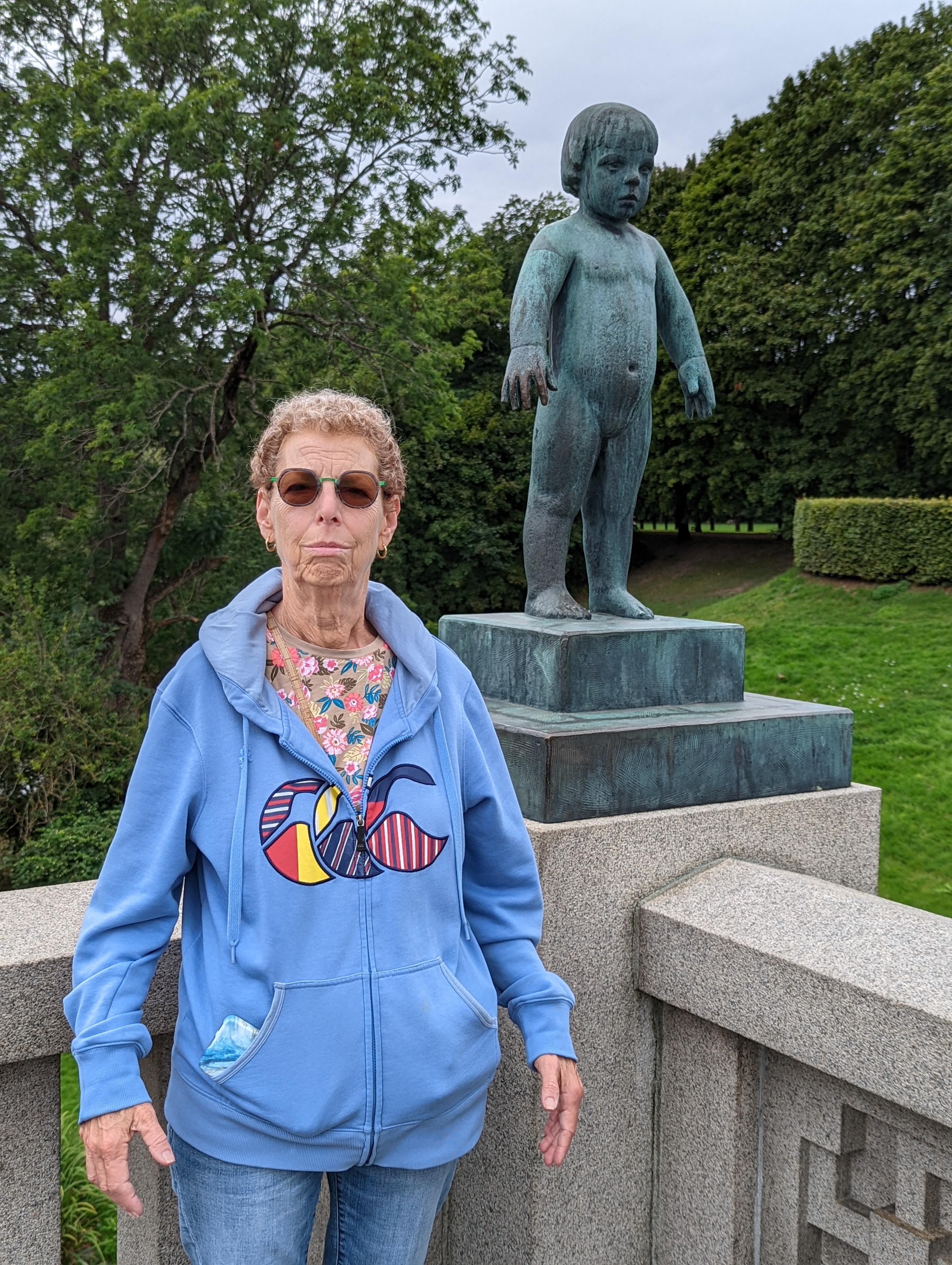 . . . to the Vigeland Sculpture Park. We had visited there some years ago and were anxious to get back. In the park there are over 200 sculptures done by Gustav Vigelands. For me, the sculptures provide fascinating statements about the human condition and relationships. Definitely worth a return visit. Pardon all of the photos but there was so much to see!